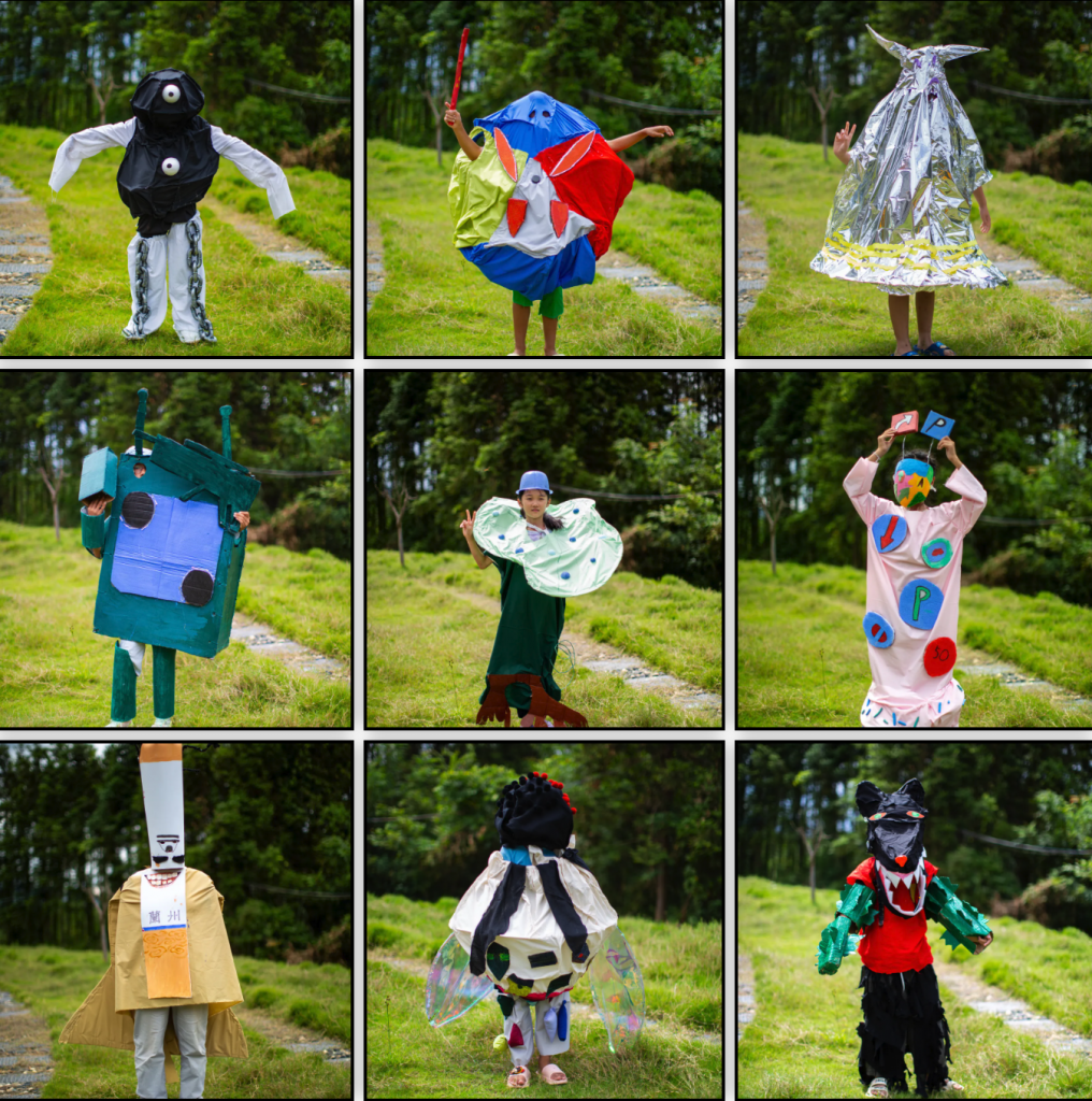 在展演的最后,一个个可爱的孩子向大家介绍自己,一个个闪烁着爱与真诚的名字从幕后走向台前。“艺术如何成为世界一面镜子?是去照见远方的世界,反射宏大的叙事?在这里,在这片山野间,大元社的孩子们、老师们,给了我们一个更生动、更深刻的答案。这面镜子,照见的不是远方,而是此地;不是他人,而是自己。燕姐和潓姐和我们一样,从跨媒体艺术学院走出,而她们所做的,是将跨媒介创作的思维,变成乡村美育最温暖的实践。她们不是简单地仅仅教授技法,而是搭建了一个场域,让每种声音都被听见,让每个孩子身上野生的、蓬勃的创造力都被看见。这些天,我们一起用布料编织梦境,用山间的色彩涂抹想象,孩子们的想象力毫无边界,动手能力更是超乎我们的想象。那些我们一起用布料、颜料和各种奇怪材料制作出来的服装,每一件都是一个小小的奇迹。你们用最直接的行动告诉我们——艺术就是敞开心扉的创造,是不怕弄脏双手的实践。让我们看到,艺术最重要的媒介,从来不是昂贵的材料,而是毫无拘束的心灵。”团队成员宋天悦说。