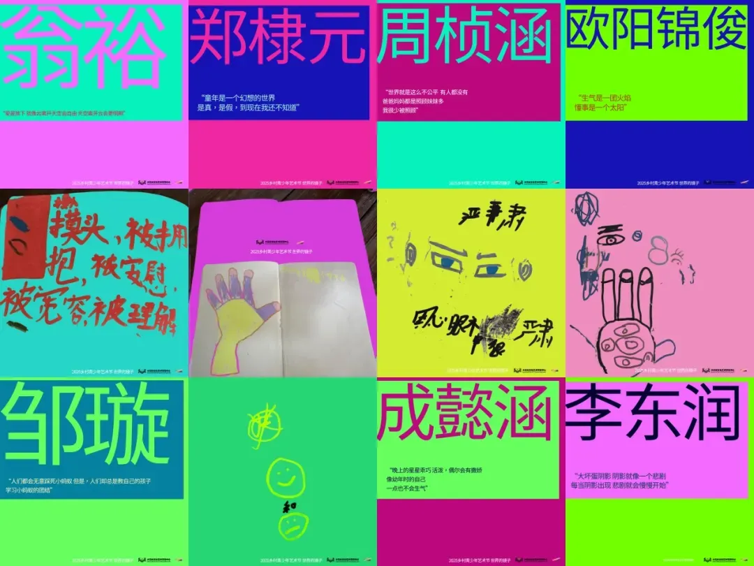 从海报、地标到展墙的呈现,每一步都在构建儿童专属的视觉空间。将孩子们的涂鸦作品加之高饱和的色彩,将童真的诗意跃然纸上,使得周遭的环境充满趣味性。符号和布局不再是装饰,更是一种语言,让孩子们感知自己与环境的关系。每一幅画面都像一面镜子,反射出孩子们内心的世界,也传递着他们的想象与情绪。在这个过程中,团队尝试将跨媒体艺术理念融入空间设计,让孩子们的感知被激活,从视觉出发理解空间、符号与自我表达的关联。