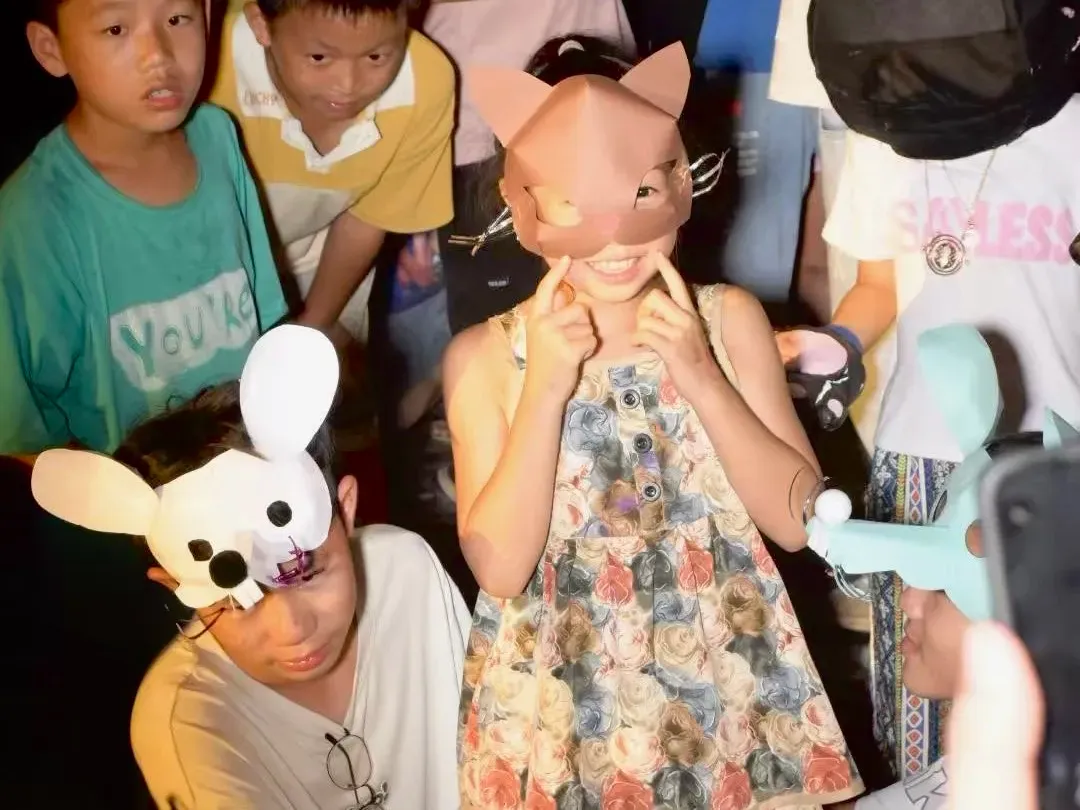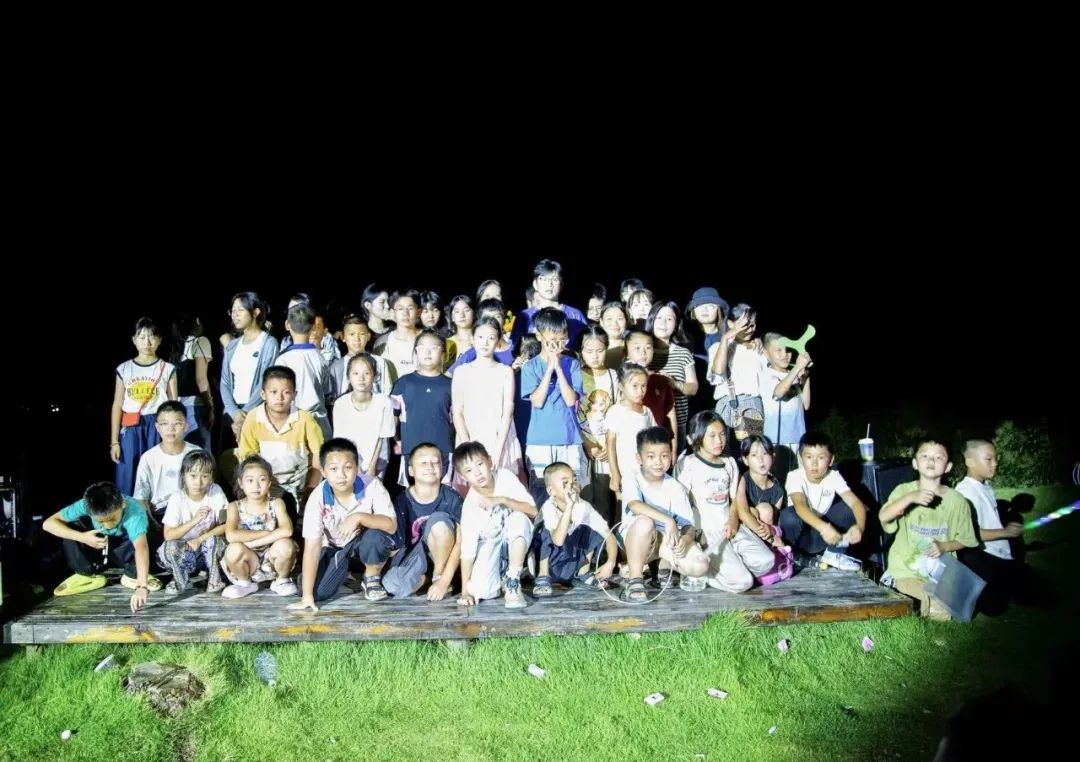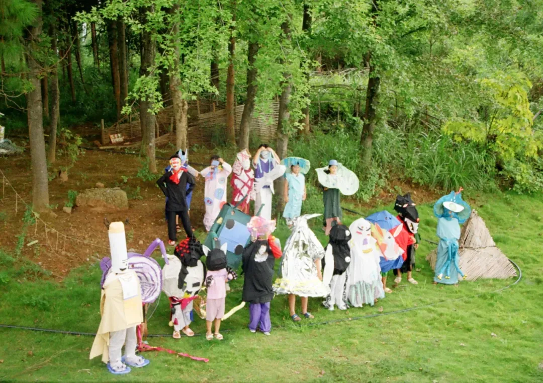当艺术节正式拉开帷幕,昔日见证孩子们潇洒身影的草坪摇身一变成为了舞台。自然、秀丽、生动、野生在这里汇聚。整个大元社都充满了期待的氛围。那一个个熟悉而又动人的声音,在舞台灯光点亮的瞬间化为悦耳的台词与歌声。孩子们带着他们的作品登场——表演、朗读、讲述、歌唱、舞蹈,舞台成为他们梦想的延伸。“时空镜的另一端,是一片无边的沙漠。这里有个孩子叫小透明——他普通到几乎没人能看见他。迷失在沙漠中的他,遇到了一条眼镜蛇。奇怪的是,这条蛇看得见他。眼镜蛇说:‘因为我有一双能看见他人优点的眼睛。’”稚嫩的声音在空气中回荡,观众们的掌声与笑声交织。似乎天真烂漫不再只属于孩子,而是属于这片土地,这个夜晚。