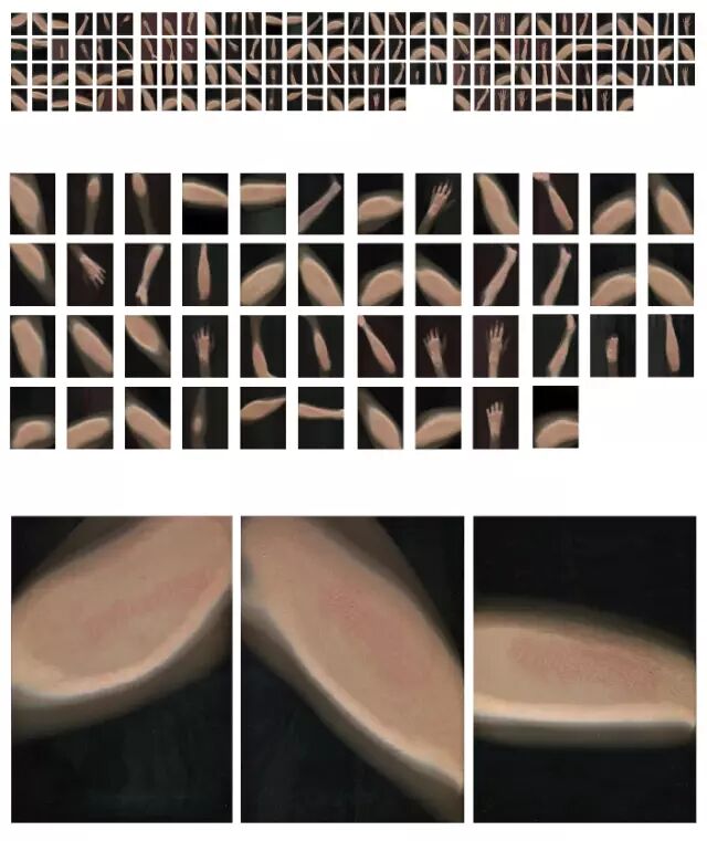 划痕症,也就是我们所知道的荨麻疹,通常出现在过敏性体质的人群中。在来到杭州的第二年,我也得了这种症状。皮肤在被尖锐物刮划后会有短时间的红肿发痒,并出现类似浮雕的显影,45分钟后这些症状又会自行消失。这个“病”既不会给我带来实质性的身体伤害,也不会过多影响日常的生活。相反如果哪一天划痕消失,也许我还会不习惯。于是我开始思考生活中什么是必要的,而我们又丢失了什么。我的整个计划通过在身上的书写来收集一类特定事物的信息,用扫描仪记录下显现的划痕皮肤。这件工作将持续下去,直到有一刻我不再能划出痕迹,而对于《划痕计划》而言,当我不能再划出痕迹时,也就是完成自我塑造之时。